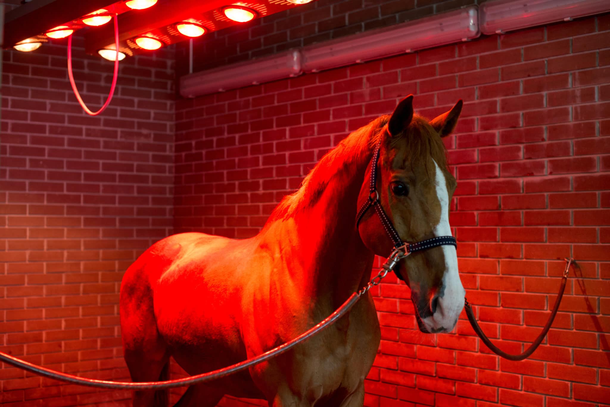 Comme chez tout bon sportif, après un effort conséquent, l’organisme du cheval génère une quantité non négligeable d’acide lactique. De plus, malgré les efforts fournis pour apporter un certain confort lors du port des selles et des sangles, le poids du cavalier associé à ces équipements engendre des contraintes en compression dorsale et thoracique du cheval. La séance de solarium sert à rétablir de façon optimisée la circulation sanguine en profondeur au niveau du dos. Ainsi, même les petits capillaires qui ont pu être compressés pendant le travail retrouvent un fonctionnement intense. Cela atténue les courbatures dues aux travaux de musculation et d’assouplissements des muscles. L’entraînement est ainsi accéléré et le cheval répond de façon beaucoup plus positive au travail.