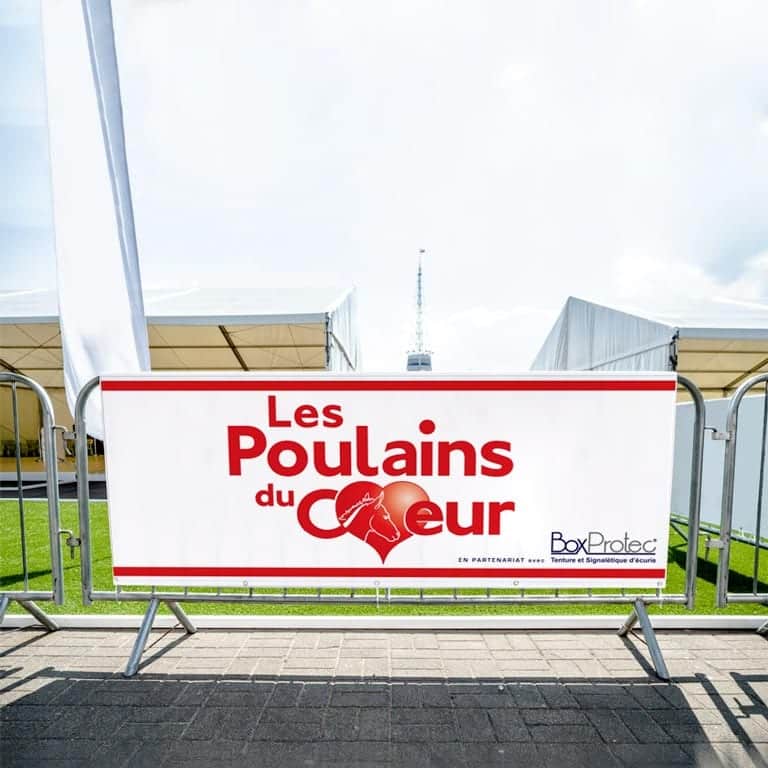 Cette bâche est une banderole ou kakémono. Elle est conseillée pour des annoncer des évènements comme la journée du journée du cheval, des portes ouvertes, le nom de votre écurie, le nom d’un sponsor….
