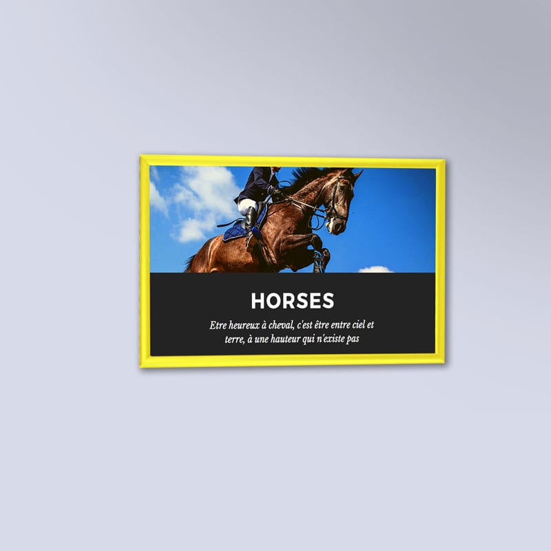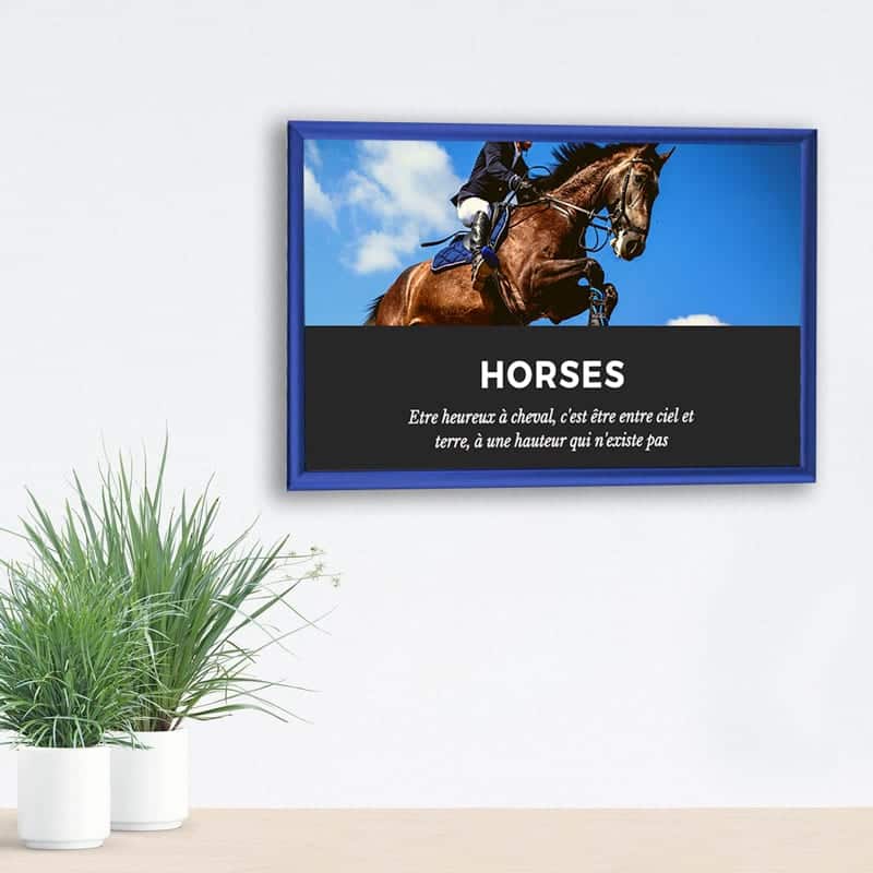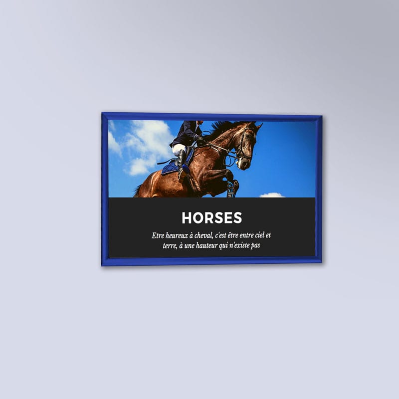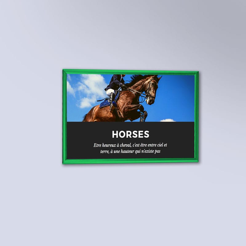 Fabriqués en aluminium de haute qualité, nos cadres sont laqués avec une peinture époxy résistante pour une finition durable. Dotés d’une vitre en plexiglas transparent, ils protègent vos visuels des rayures et des poussières.