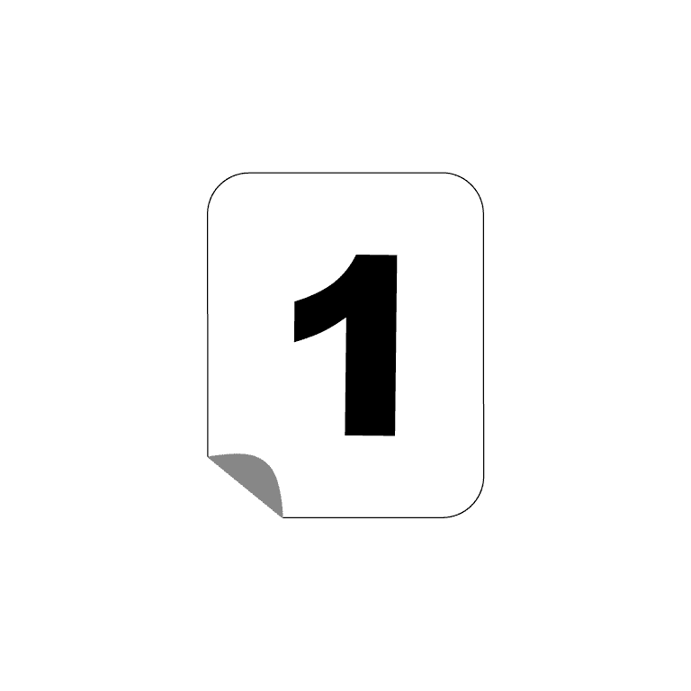Autocollants avec coins arrondis fond blanc impression noir avec pelliculage transparent pour protéger des rayures et des rayons UV du soleil.