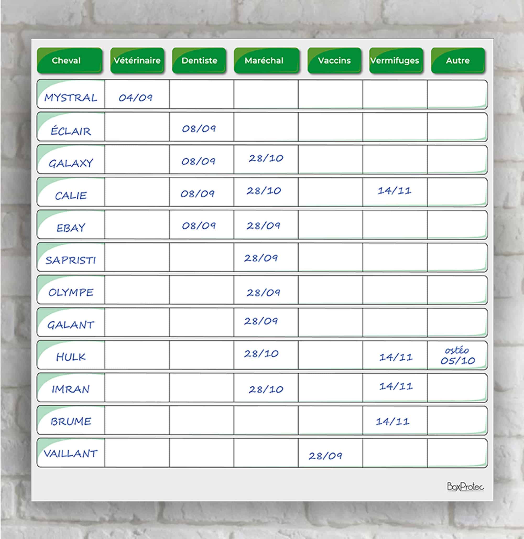 Optimisez la gestion de la santé de vos chevaux avec notre planning de soins effaçable !