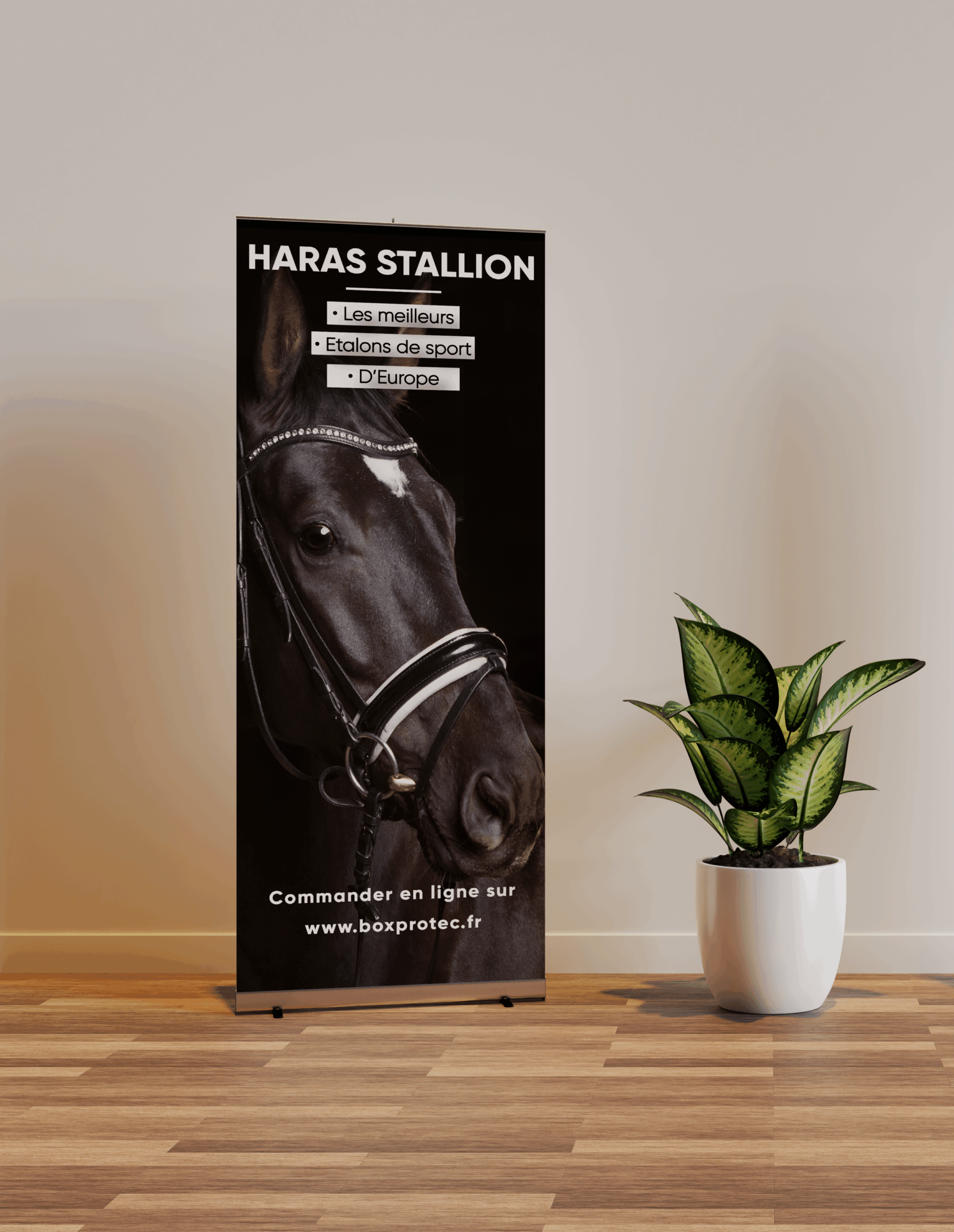 Profitez dès maintenant de notre expertise en impression rollup pour valoriser votre établissement équestre.