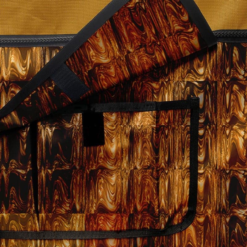 Découvrez notre toute nouvelle tenture de box avec rangement, avec un fond motif or.
